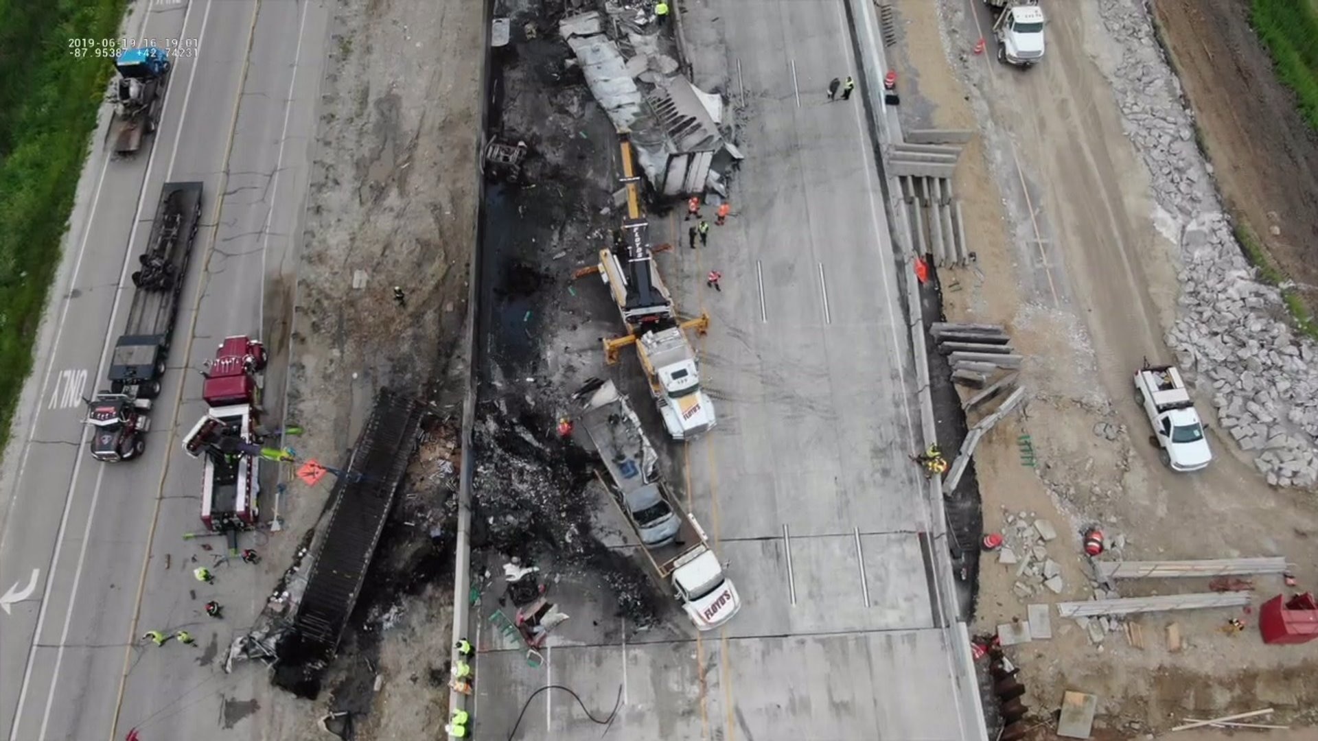 Drone video from fiery semi crash in Racine County