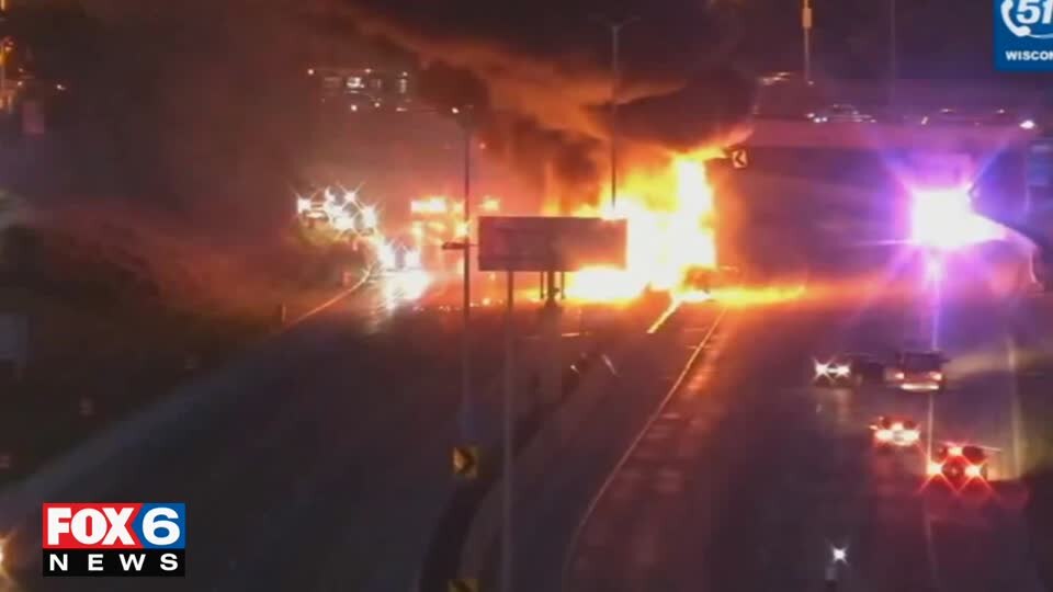 Johnsonville semi catches fire on I-43 near North Ave.