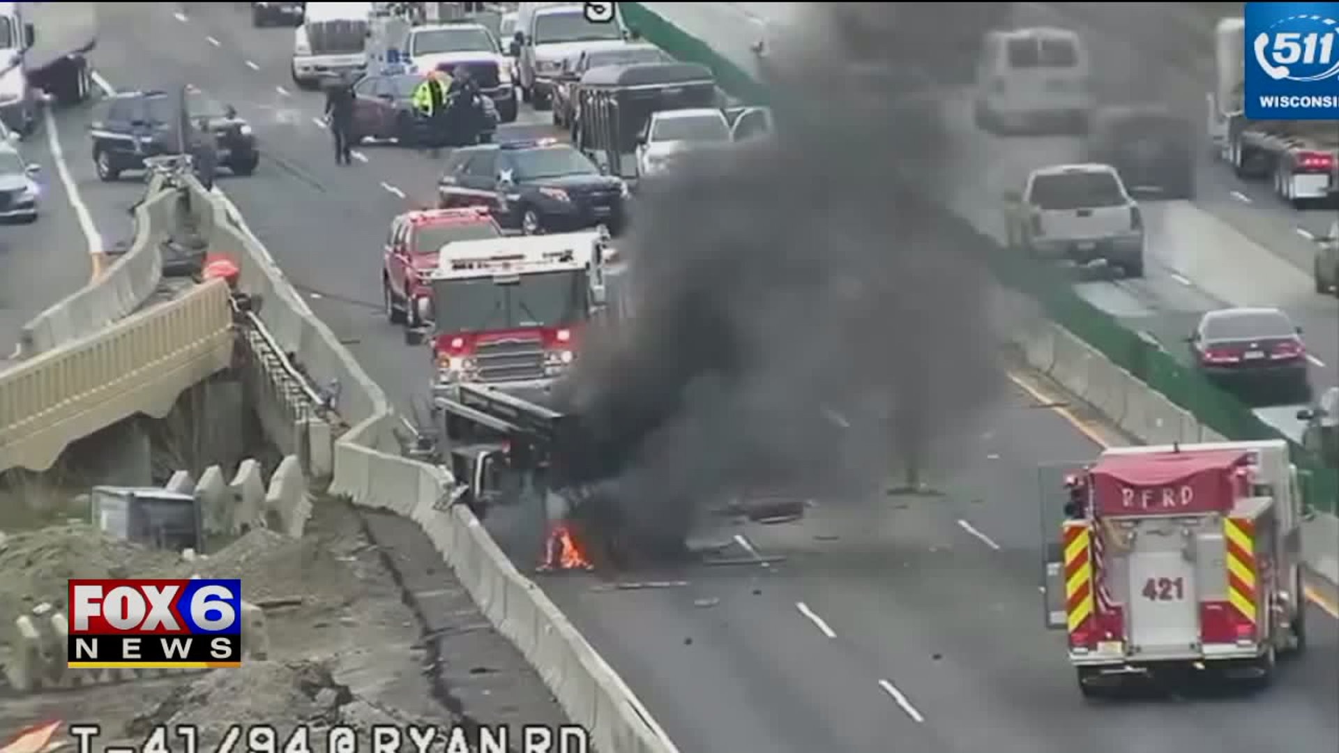 Truck fire shuts down I-41/94 NB at Ryan Road Monday afternoon