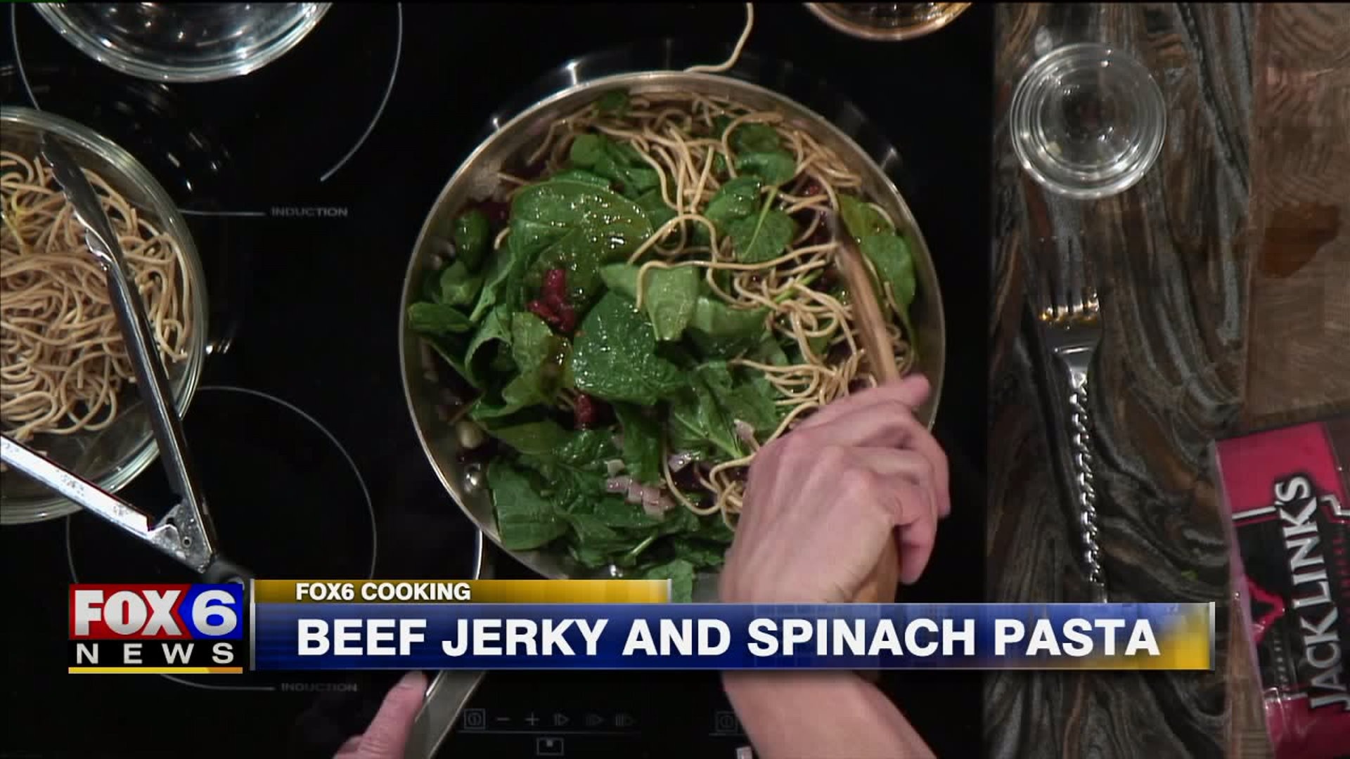 Beef jerky and spinach pasta