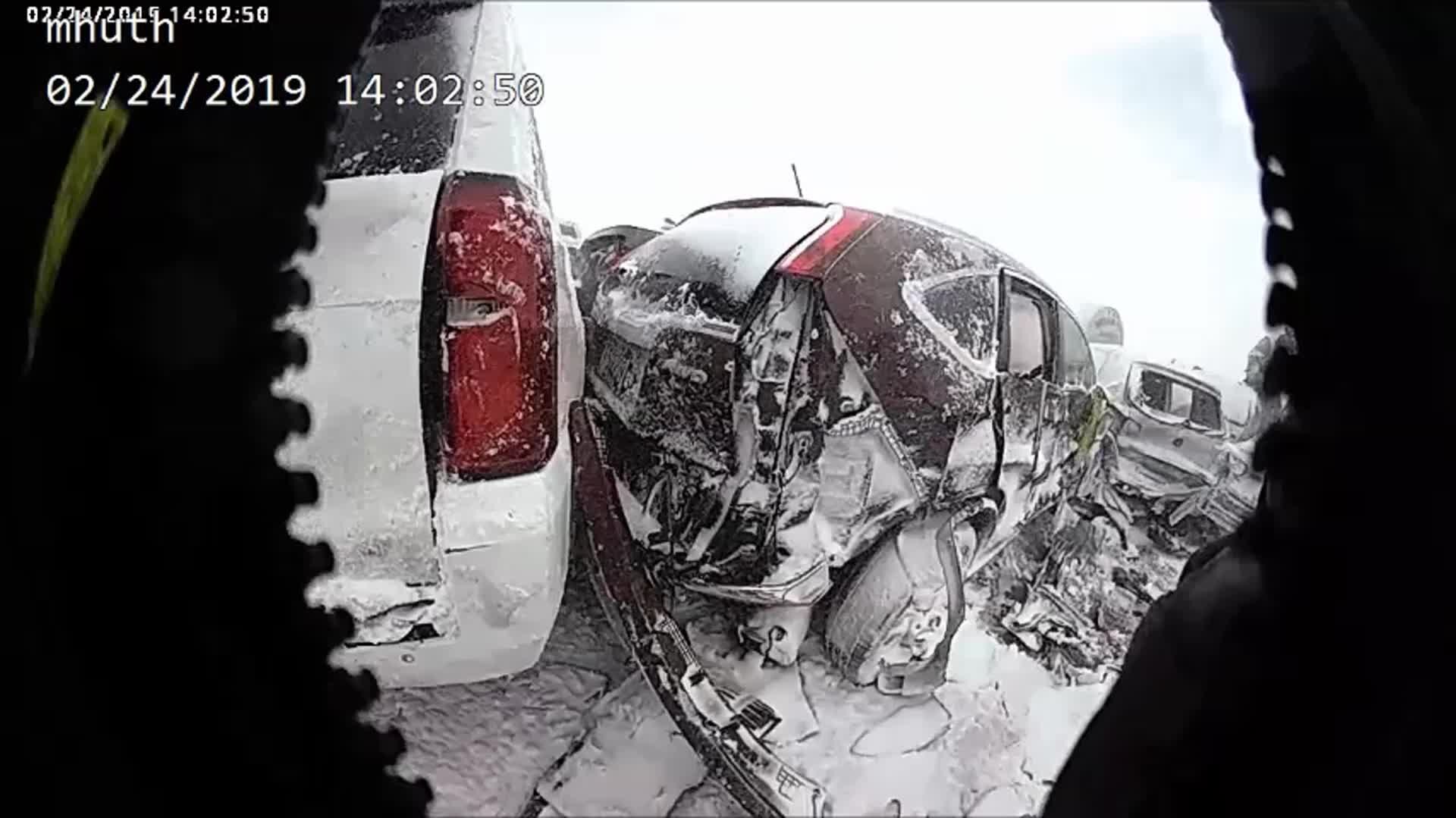 Firefighter climbs over wreckage at scene of pileup near Neenah: Body camera video (2)