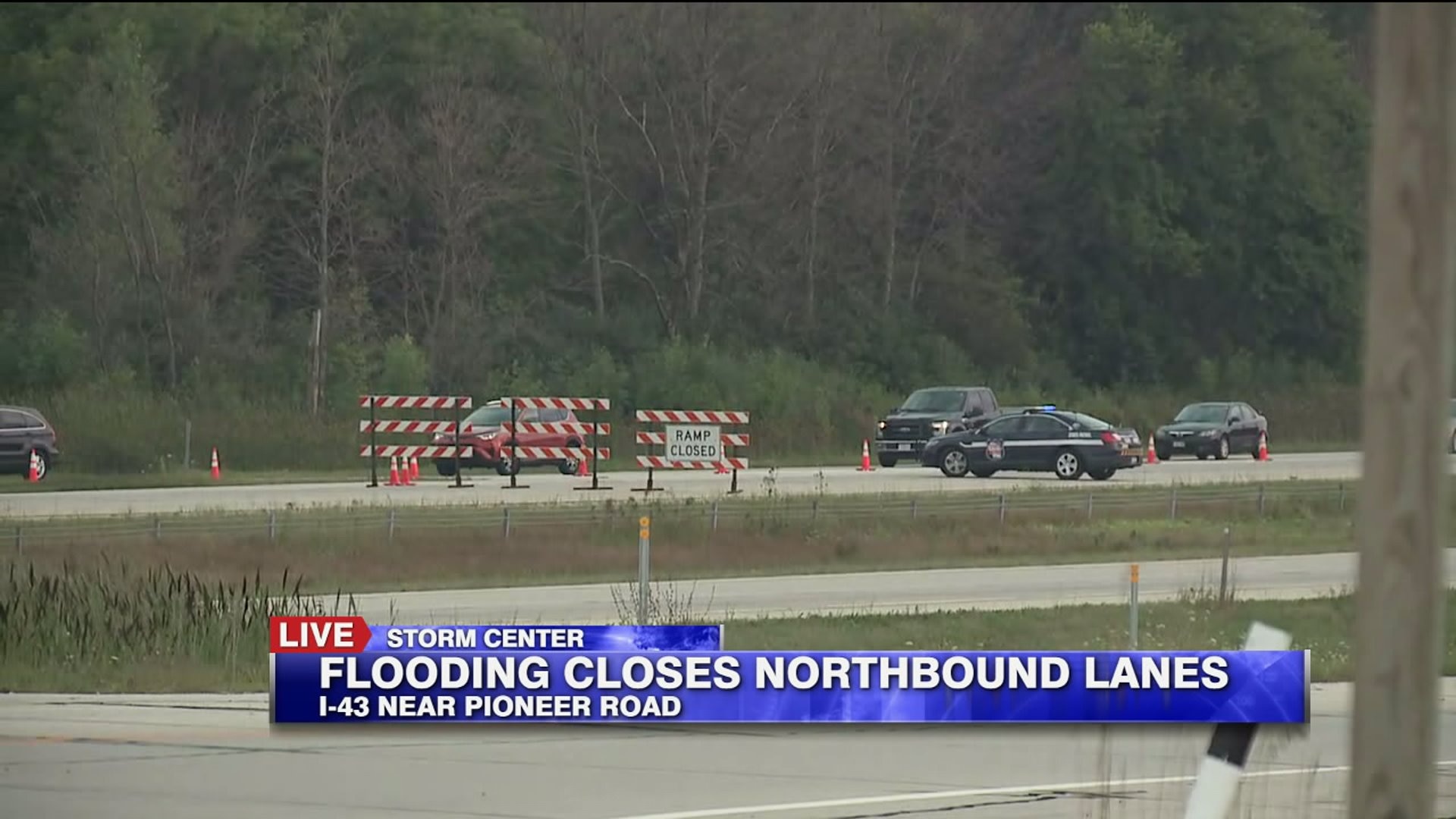 Flooding closes I-43 NB at Pioneer Road near Grafton Monday evening