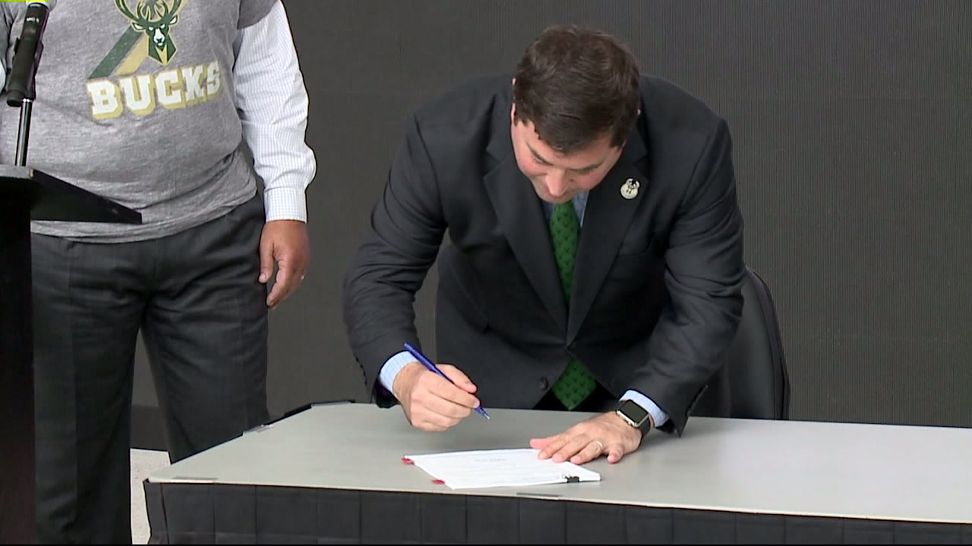 Bucks arena signing ceremony