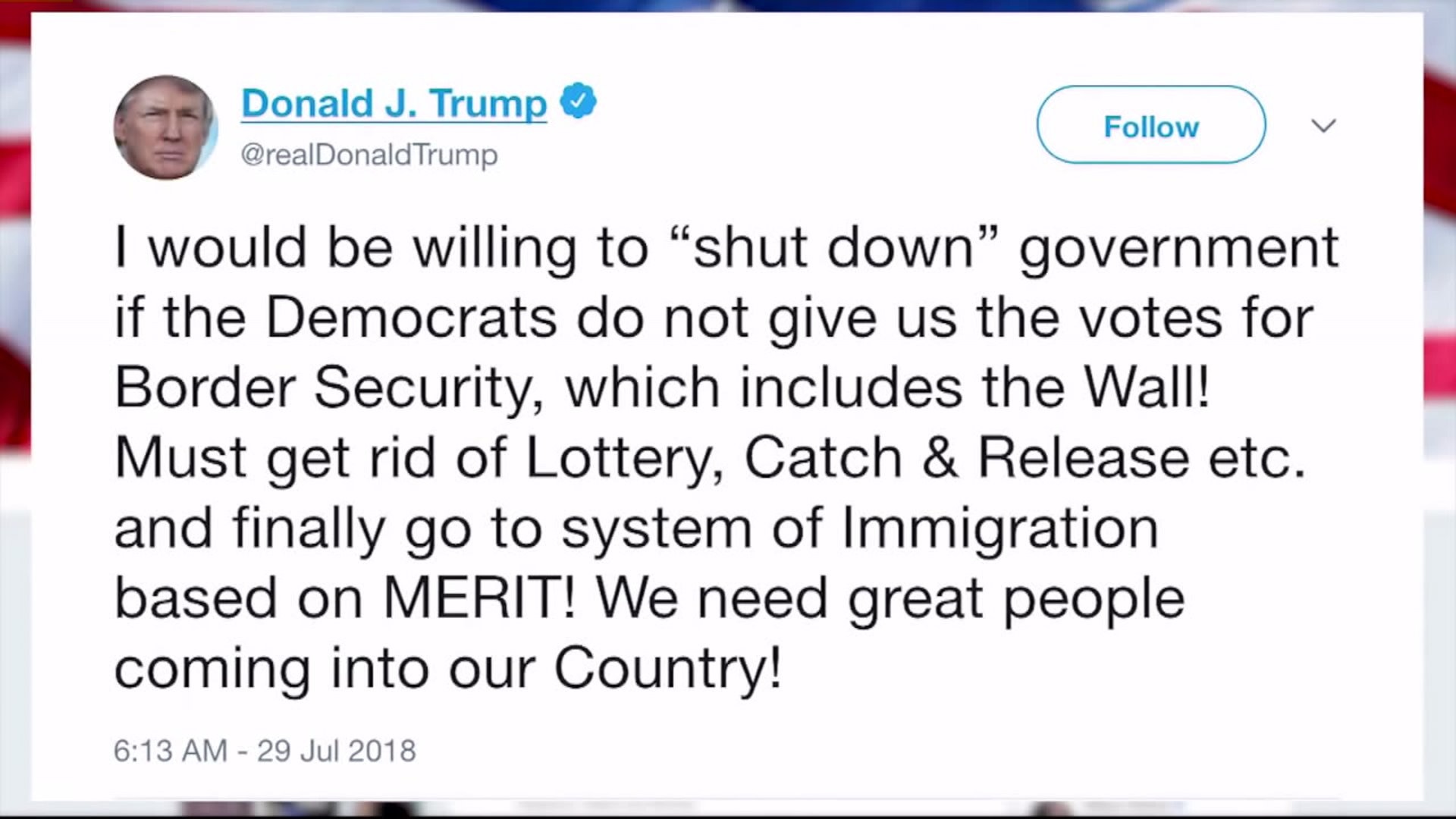 Pres. Trump willing to shut down government over border security