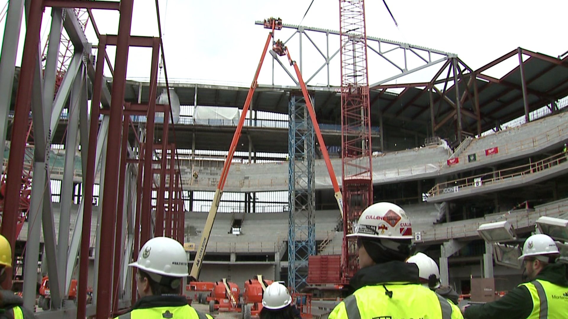 First roof truss of new Bucks arena raised into position
