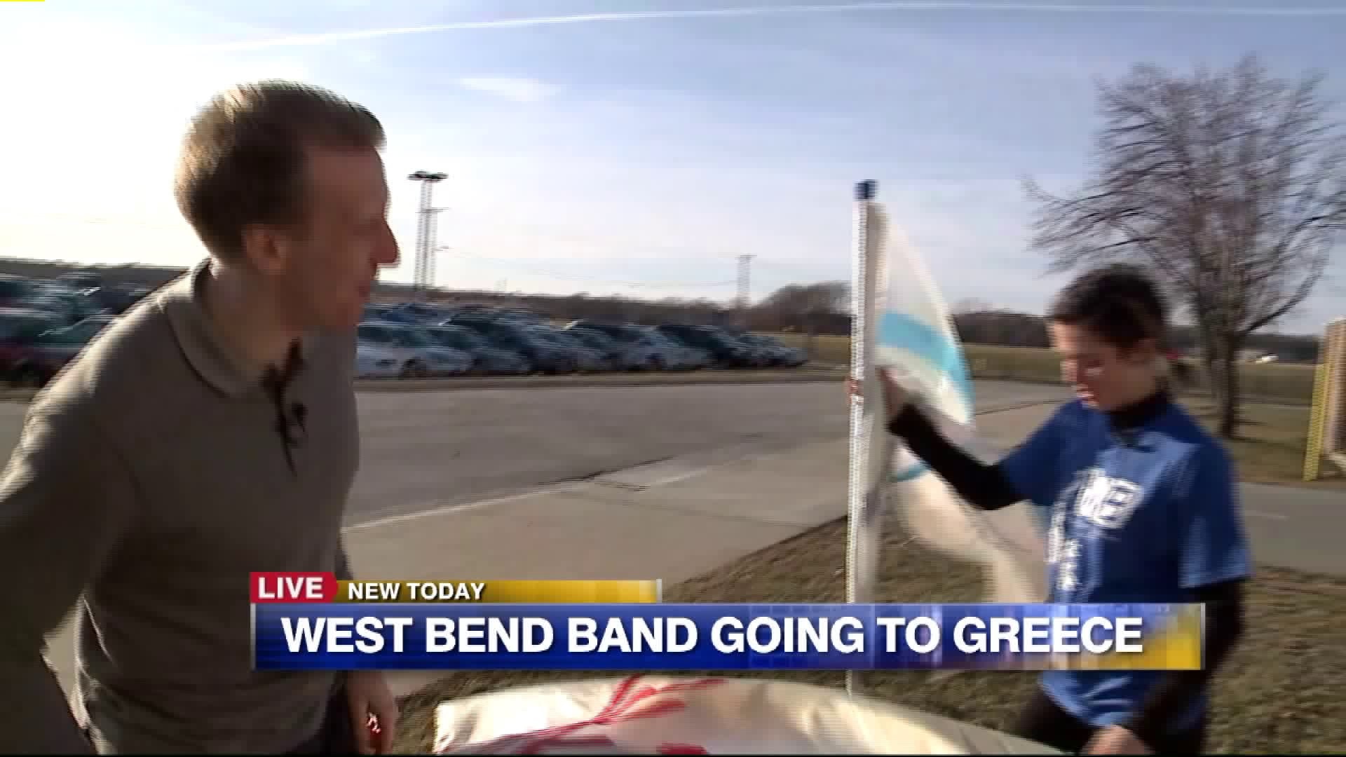 Carl talks with members of the color guard about the upcoming trip