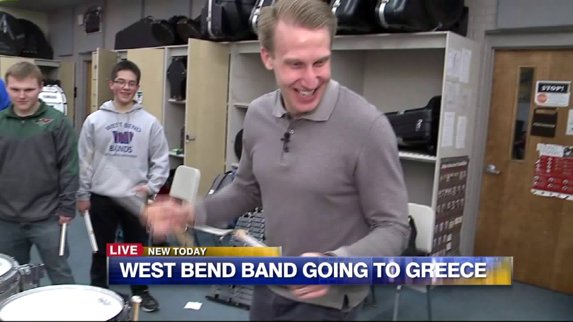 Student talks about what he`s most excited for, shows Carl how to play drums