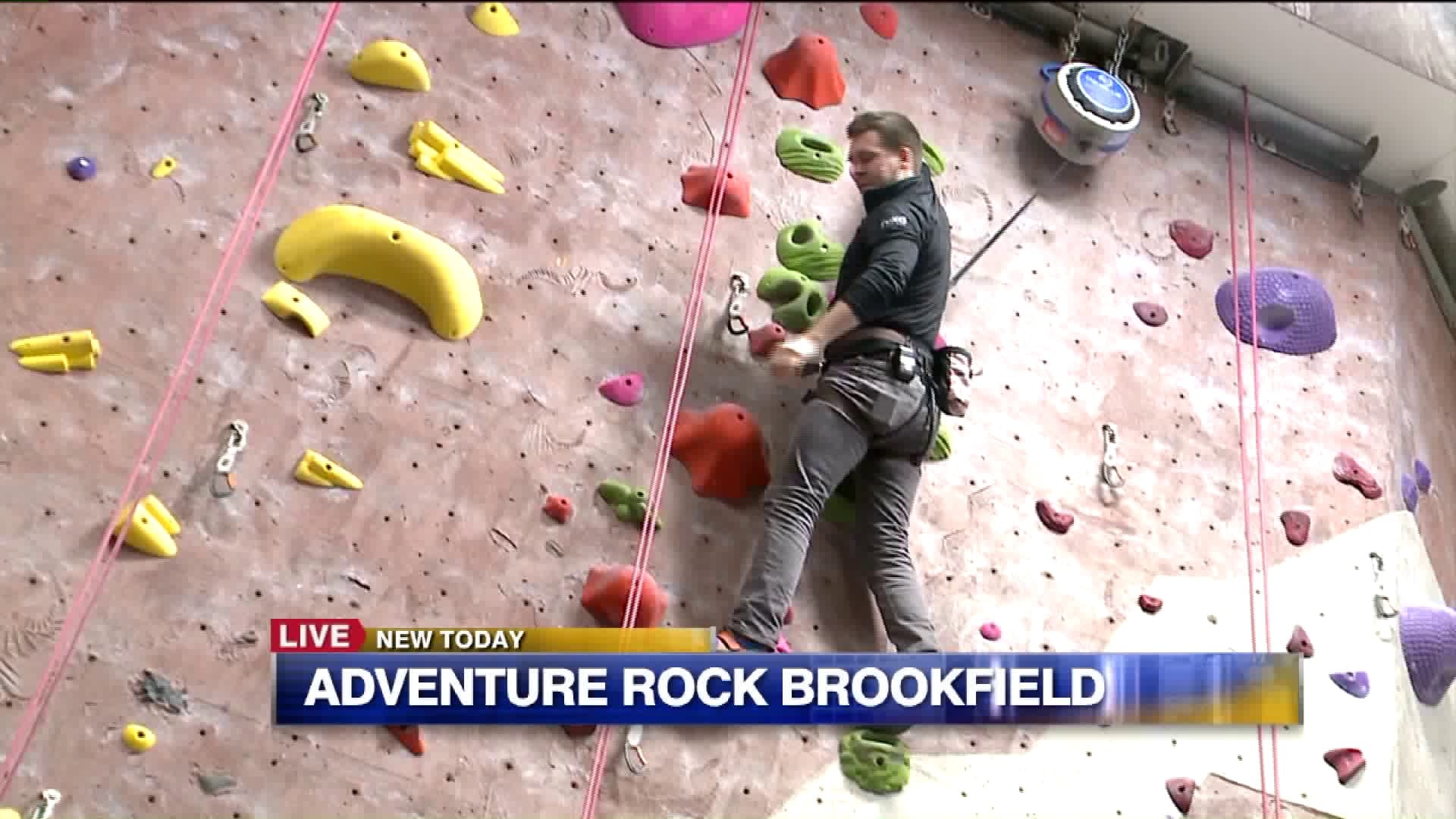 Jonathon has a blast indoor climbing at Adventure Rock in Brookfield