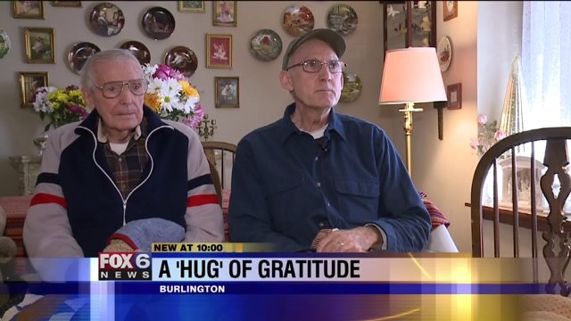 Father and son, ages 98 and 68, both veterans, gifted handmade quilts as "thank you for their service"