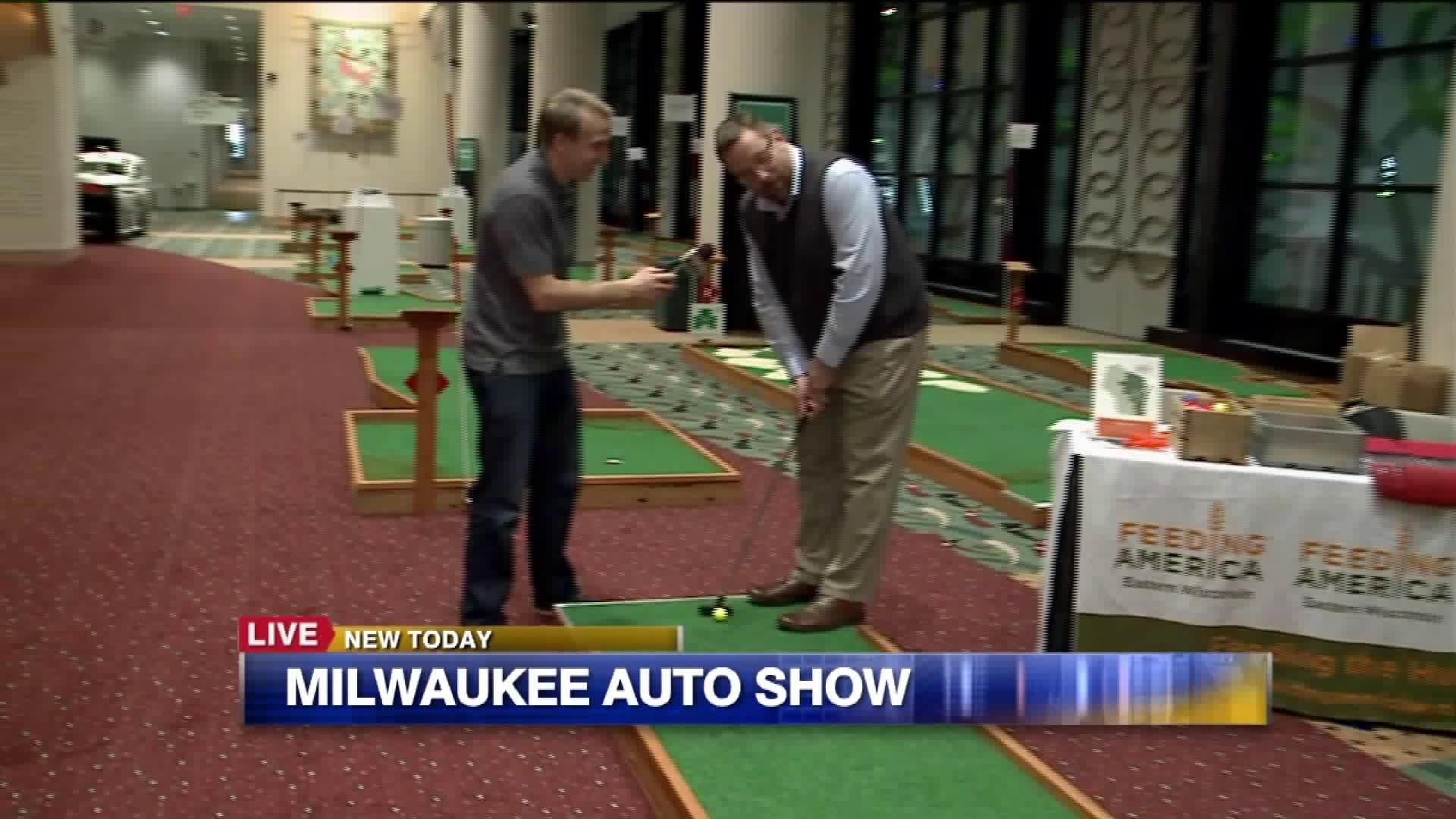 Carl plays mini golf as he previews the Greater Milwaukee Auto Show