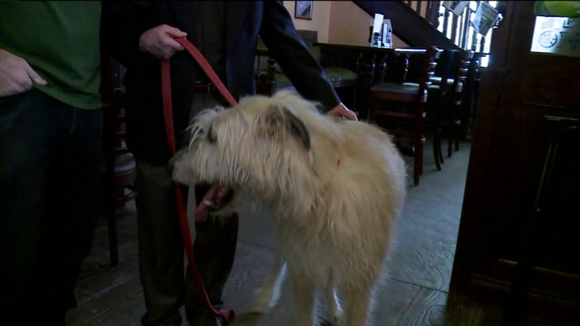 Kramp meets an adorable dog that will take part in St. Patrick`s Day parade