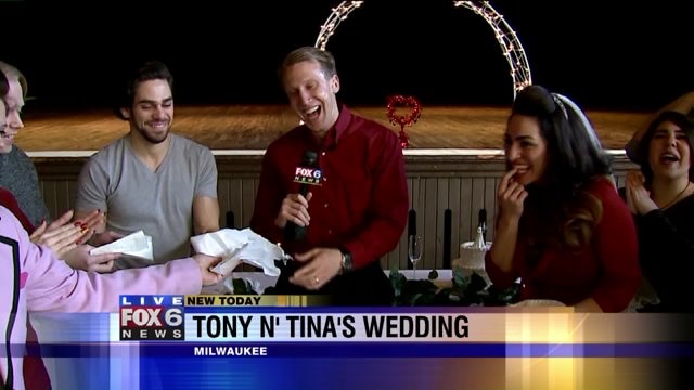 Carl talks with the cast of Tony n` Tina`s Wedding