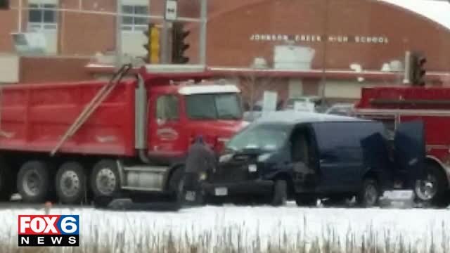 Flight for Life responds to collision between dump truck, van in Johnson Creek