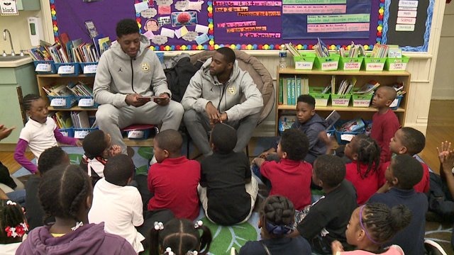 Marquette basketball players give back to kids by `Reading with the Golden Eagles`