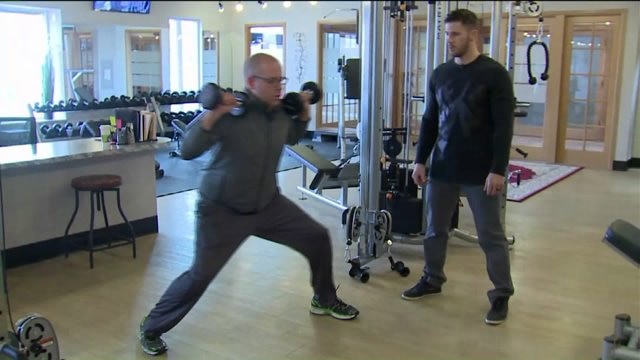 Kramp learns a workout routine at East Towne Fitness