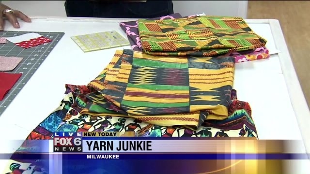Kramp checks out holiday quilts at Yarn Junkie