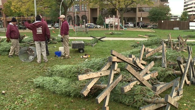 "A family tradition:" On Halloween, 175 Christmas evergreens delivered at Cathedral Square Park!