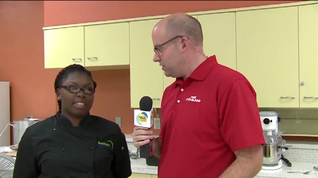 Kramp talks with students preparing for a culinary career