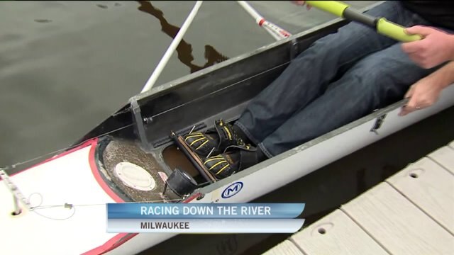 Kramp learns about the equipment needed to row during Milwaukee River Challenge