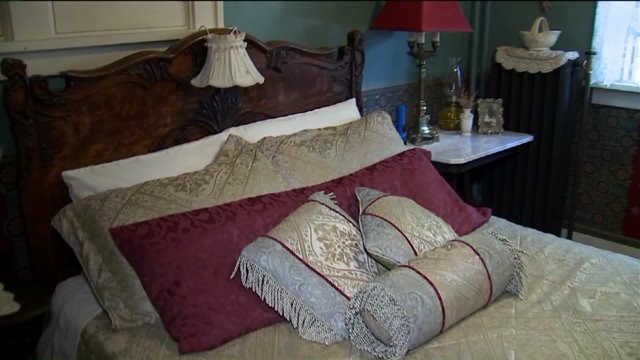 Kramp checks out the bedrooms at the Schuster Mansion
