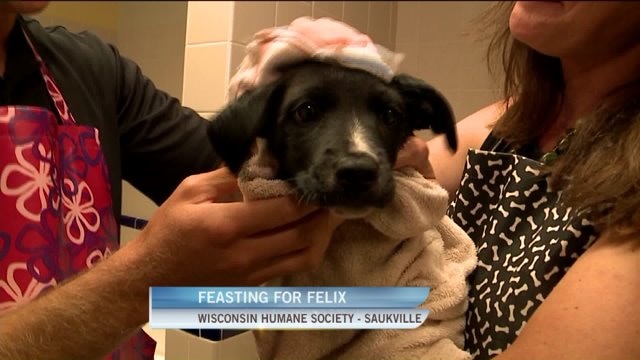 Carl helps bath a dog as he previews Feasting for Felix