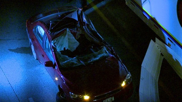 Crash involving car, semi in Mitchell Interchange