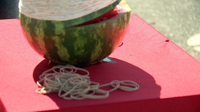 Fun with fruit! Watermelon wrapped in rubber bands explodes
