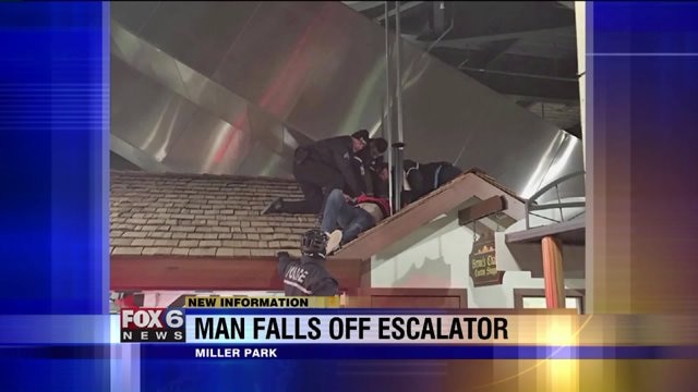Man falls from escalator at Miller Park; lands on roof of Bernie`s Chalet
