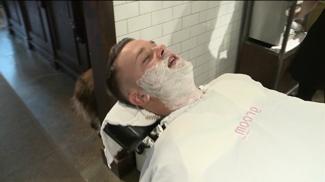 Chip gets a shave at Groom for Men