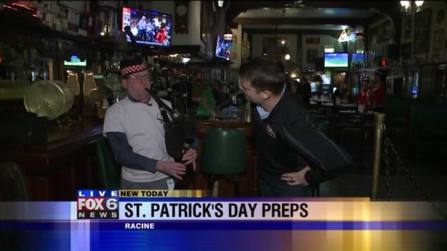 Chip learns how to play the bagpipes after a quick lesson from Dr. Mataczynski