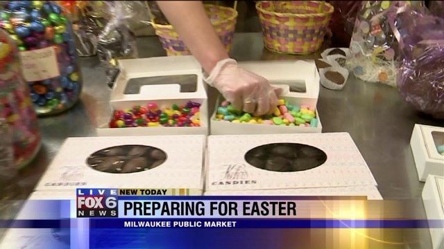 Laura helps put together Easter baskets for kids