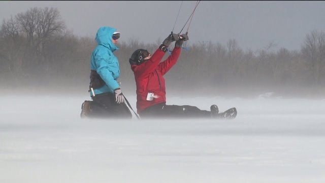It`s not too late to try a new winter sport! All you`ll need is either skis or a snowboard and kite