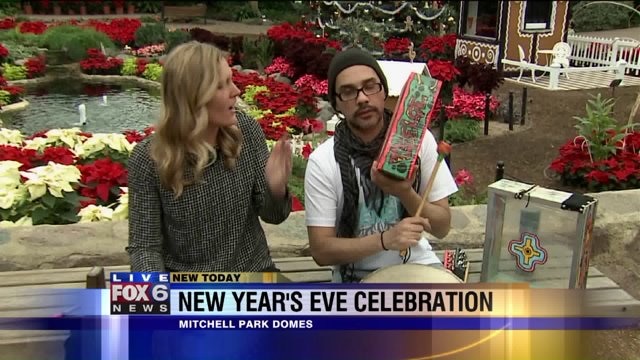 Laura Langemo tests out her drumming skills at the Mitchell Park Domes