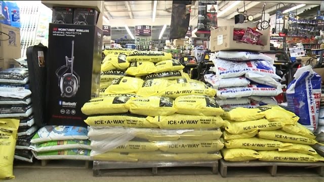 Winter`s coming back! Hardware store staff prep salt, shovels & more for wintry mix