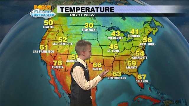 Preston Busch helps Meteorologist Rob Haswell with the weather