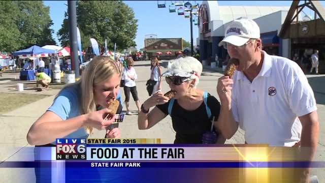Laura tries frood from Saz`s State House as she hangs at State Fair