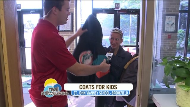Chip hangs at St. John Vianney School as Condella`s Coats for Kids kicks off
