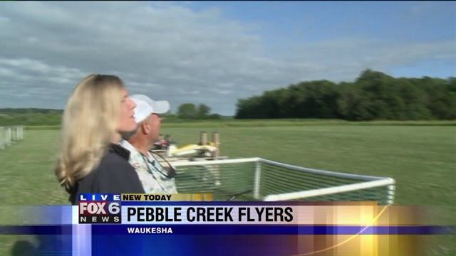 Laura gets a lesson in how to operate a remote controlled airplane