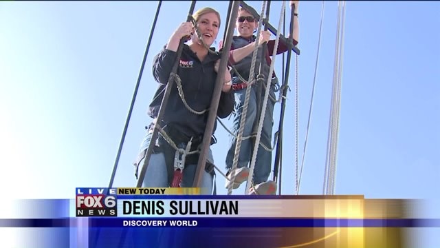 Laura talks with captin of Denis Sullivan; climbs the mast