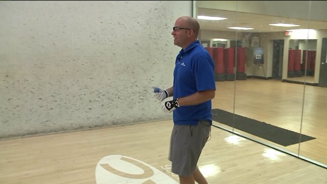 Brian hits the court to learn how to play handball