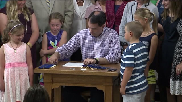 RAW VIDEO: Governor Walker signs two-year spending plan in Waukesha