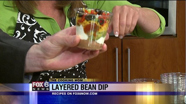 The Cooking Mom prepares layered bean dip