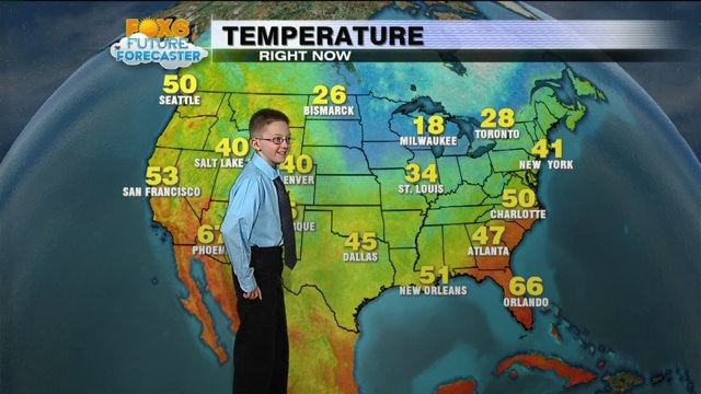 Evan helps FOX6 and Meteorologist Rob Haswell with the weather