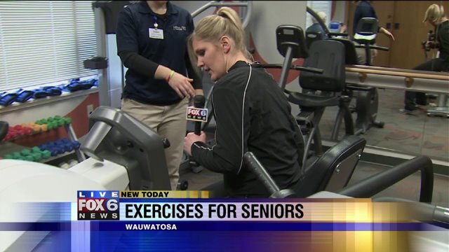 Laura checks out exercise machines designed for seniors
