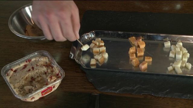Chip samples cheese at Clock Shadow Creamery