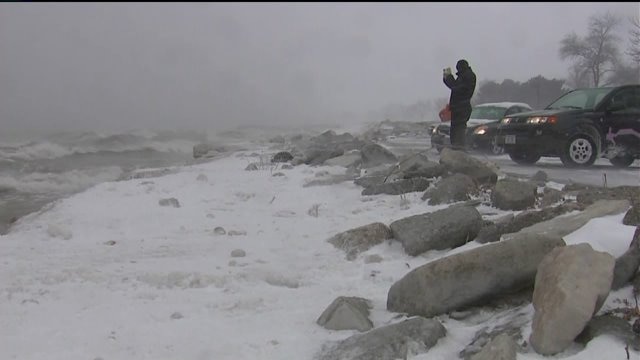Taking a break from shoveling, folks in Milwaukee enjoy HUGE waves on Lake Michigan, fun sledding