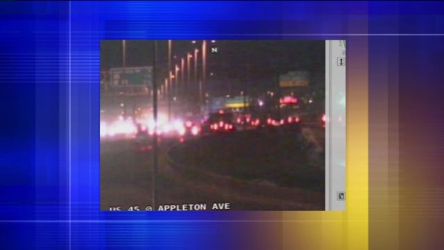 Semi jackknifes on Highway 45 near Appleton Avenue