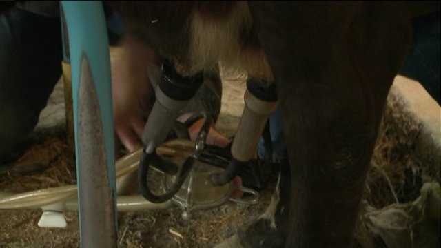 Chip learns how to milk a cow