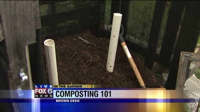 Our compost bin allows us to easily add plant debris, turn it into the next section