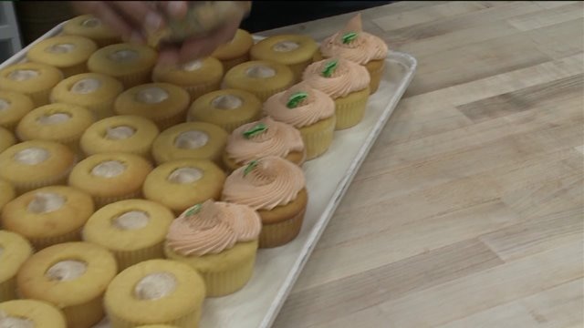 Chip learns about their buttercream frosting, helps finish cupcakes